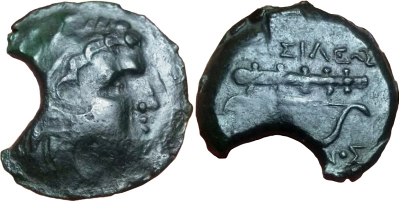 - Палица, под ней лук тетивой вверх. Надпись в две строки: сверху- ΒΑΣΙΛΕΩΣ, внизу - ΛΕΥΚΩΝΟΣ