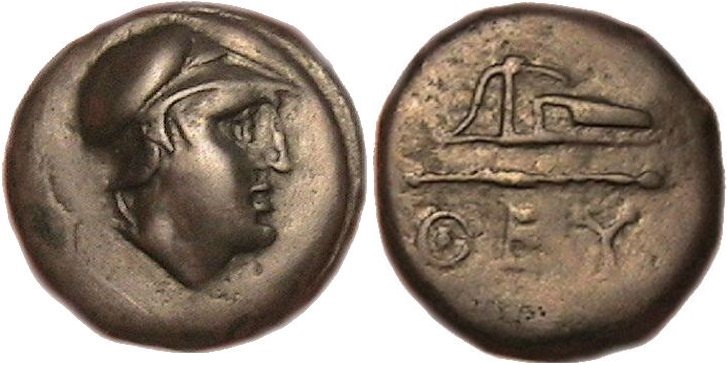 - ΘΕΥ. Лук в горите, под ним палица вправо