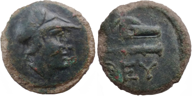 - ΘΕΥ. Лук в горите, под ним палица вправо