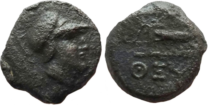 - ΘΕΥ. Лук в горите, под ним палица вправо
