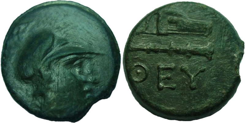 - ΘΕΥ. Лук в горите, под ним палица вправо
