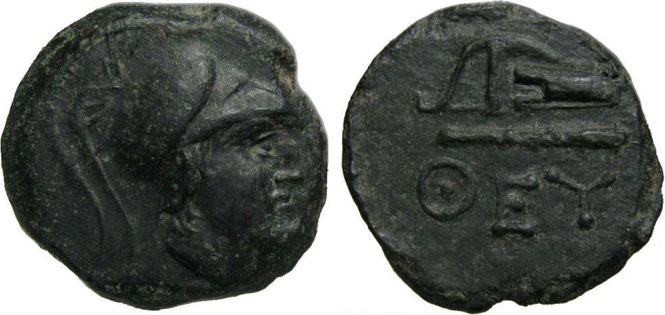 - Голова Афины в коринфском шлеме, вправо