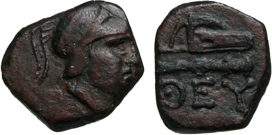 - ΘΕΥ. Лук в горите, под ним палица вправо