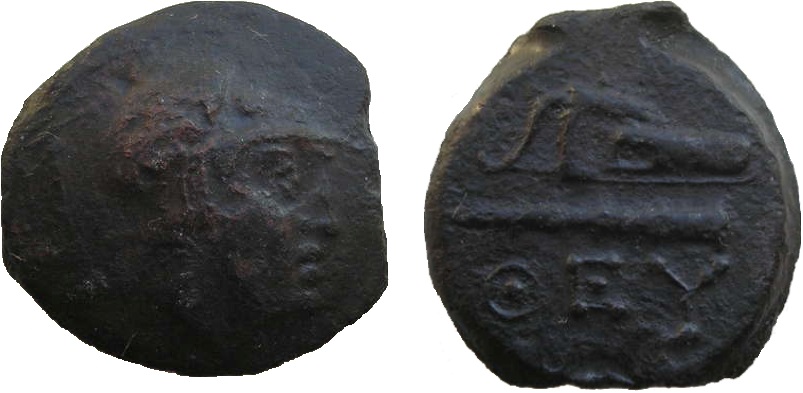 - ΘΕΥ. Лук в горите, под ним палица вправо