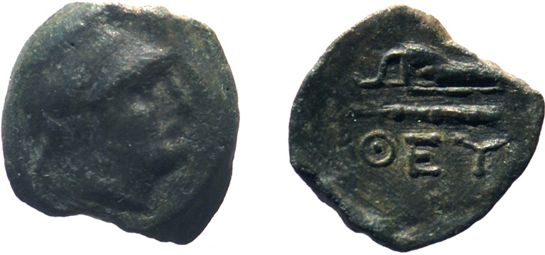 - ΘΕΥ. Лук в горите, под ним палица вправо