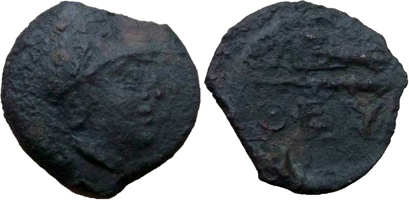 - ΘΕΥ. Лук в горите, под ним палица вправо