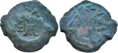 Зограф А.Н. XLI, 8. Эта разновидность надчеканки не описана ни Анохиным В.А, ни Шеловым Д.Б. --------------------------------- Надчеканка наносилась произвольно, без "привязки" к аверсу, либо реверсу монеты.
