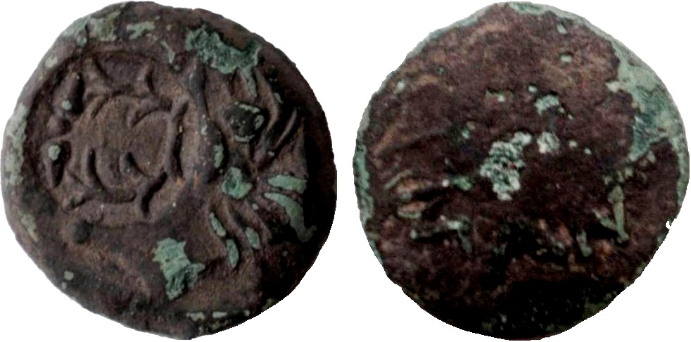 После изучения монетного клада найденного в Краснодарском кр. и состоящего из типов: основной массив 133-3117 и его разновидностей (133-3273, 133-3361), а так же единичных монет 138-3018, 000-3174 и 157-3103 считаем, что датировка данного типа В.А.Анохиным ошибочна. Ан.133 с надчеканом "венок" следует отнести к третьей четверти III в. до н.э.