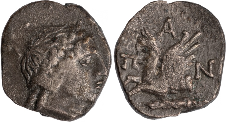 ГлавнаяКаталог монетПаспорт монеты Паспорт монеты: 162-3024-23 Дополнительная информация о монете American Numismatic Society, New York. 1944.100.26309 Номер:162-3024 Количество монет в архиве:25 монет Центр чеканки:Пантикапей Период чеканки: по Анохину В.А. (1986 г.)160 — 150 год до н.э. по Анохину В.А. (2011 г.)165 — 155 год до н.э. по Шелову Д.Б. по Фроловой Н.А. по MacDonald D.200 — 150 год до н.э. по Шонову И.В.225 — 215 год до н.э. Правитель, годы правления:Перисад III 185-180 гг до н. э. Материал монеты:Серебро Номинал:Пентобол Вес монеты:3.54 Диаметр монеты:0.0 Описание аверса:Голова Аполлона в венке вправо Описание реверса:ПАN. Протома грифона влево, внизу колос Номер по каталогу: Анохина В.А. (1986 г.)162 Анохина В.А. (2011 г.)1067 Шелова Д.Б.- Фроловой Н.А. MacDonald D.129 Шонова И.В.Таб. XXVIII, № 256 Архив монет данного типа 162-3024-15 Пантикапей. 160 — 150 год до н.э. Серебро Пентобол, вес 3.41 г, d20.0 мм 162-3024-1 Пантикапей. 160 — 150 год до н.э. Серебро Пентобол, вес 2.24 г, d17.0 мм 162-3024-2 Пантикапей. 160 — 150 год до н.э. Серебро Пентобол, вес 2.53 г, d17.0 мм 162-3024-3 Пантикапей. 160 — 150 год до н.э. Серебро Пентобол, вес 3.70 г, d15.0 мм 162-3024-4 Пантикапей. 160 — 150 год до н.э. Серебро Пентобол, вес 2.64 г, d14.0 мм 162-3024-5 Пантикапей. 160 — 150 год до н.э. Серебро Пентобол, вес 3.10 г, d19.0 мм 162-3024-6 Пантикапей. 160 — 150 год до н.э. Серебро Пентобол, вес 0.00 г, d0.0 мм 162-3024-7 Пантикапей. 160 — 150 год до н.э. Серебро Пентобол, вес 3.23 г, d15.0 мм 162-3024-8 Пантикапей. 160 — 150 год до н.э. Серебро Пентобол, вес 0.00 г, d0.0 мм 162-3024-9 Пантикапей. 160 — 150 год до н.э. Серебро Пентобол, вес 2.85 г, d17.0 мм 162-3024-10 Пантикапей. 160 — 150 год до н.э. Серебро Пентобол, вес 2.70 г, d15.4 мм 162-3024-11 Пантикапей. 160 — 150 год до н.э. Серебро Пентобол, вес 2.12 г, d14.8 мм 162-3024-12 Пантикапей. 160 — 150 год до н.э. Серебро Пентобол, вес 2.05 г, d15.1 мм 162-3024-13 Пантикапей. 160 — 150 год до н.э. Серебро Пентобол, вес 1.50 г, d16.0 мм 162-3024-14 Пантикапей. 160 — 150 год до н.э. Серебро Пентобол, вес 2.25 г, d0.0 мм 162-3024-16 Пантикапей. 160 — 150 год до н.э. Серебро Пентобол, вес 0.00 г, d15.0 мм 162-3024-17 Пантикапей. 160 — 150 год до н.э. Серебро Пентобол, вес 0.00 г, d0.0 мм 162-3024-18 Пантикапей. 160 — 150 год до н.э. Серебро Пентобол, вес 3.59 г, d17.0 мм 162-3024-19 Пантикапей. 160 — 150 год до н.э. Серебро Пентобол, вес 2.96 г, d0.0 мм 162-3024-20 Пантикапей. 160 — 150 год до н.э. Серебро Пентобол, вес 4.20 г, d0.0 мм 162-3024-21 Пантикапей. 160 — 150 год до н.э. Серебро Пентобол, вес 2.89 г, d17.0 мм 162-3024-22 Пантикапей. 160 — 150 год до н.э. Серебро Пентобол, вес 3.48 г, d0.0 мм 162-3024-23 Пантикапей. 160 — 150 год до н.э. Серебро Пентобол, вес 3.54 г, d0.0 мм 162-3024-24 Пантикапей. 160 — 150 год до н.э. Серебро Пентобол, вес 2.84 г, d0.0 мм 162-3024-25 Пантикапей. 160 — 150 год до н.э. Серебро Пентобол, вес 2.39 г, d0.0 мм