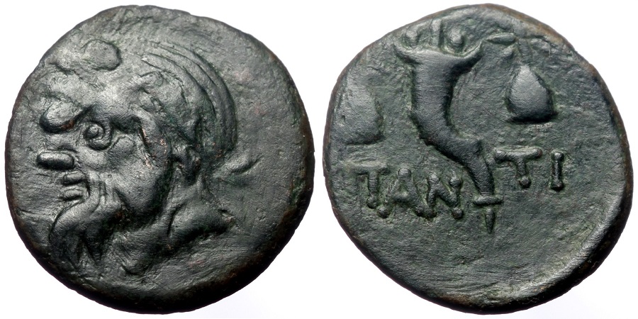 - ΠΑΝ-ΤΙ. Рог изобилия между шапками Диоскуров.
