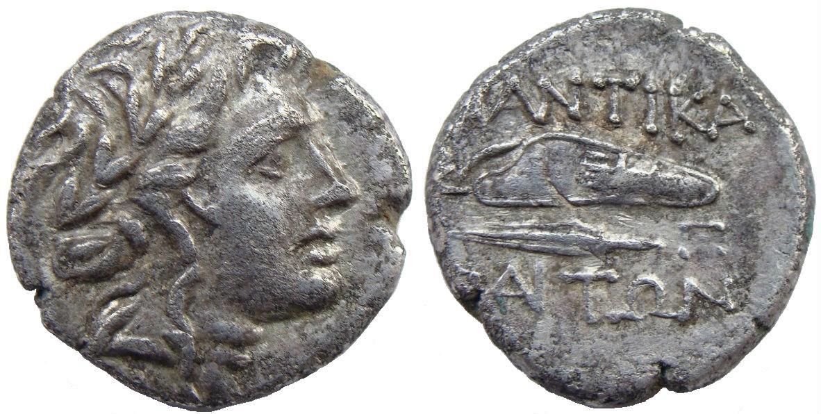 ГлавнаяКаталог монетПаспорт монеты Паспорт монеты: 189-3163-5 Дополнительная информация о монете Частная коллекция.Комментарий:По мнению некоторых нумизматов под горитом - копье, а не меч. Номер:189-3163 Количество монет в архиве:25 монет Центр чеканки:Пантикапей Период чеканки: по Анохину В.А. (1986 г.)109 — 100 год до н.э. по Анохину В.А. (2011 г.)107 — 100 год до н.э. по Шелову Д.Б. по Фроловой Н.А. по MacDonald D.120 — 105 год до н.э. по Шонову И.В. Правитель, годы правления:Митридат VI Евпатор, 109-63 гг до н.э. Материал монеты:Серебро Номинал:Драхма Вес монеты:3.91 Диаметр монеты:17.0 Описание аверса:Голова Аполлона в венке вправо Описание реверса:ΠΑΝΤΙΚΑ-ΠΑΙΤΩΝ. Горит, внизу меч и монограмма Номер по каталогу: Анохина В.А. (1986 г.)189а Анохина В.А. (2011 г.)1109 Шелова Д.Б.- Фроловой Н.А. MacDonald D.152/15 Шонова И.В. Архив монет данного типа 189-3163-18 Пантикапей. 109 — 100 год до н.э. Серебро Драхма, вес 3.25 г, d0.0 мм 189-3163-1 Пантикапей. 109 — 100 год до н.э. Серебро Драхма, вес 3.31 г, d17.0 мм 189-3163-2 Пантикапей. 109 — 100 год до н.э. Серебро Драхма, вес 0.00 г, d0.0 мм 189-3163-3 Пантикапей. 109 — 100 год до н.э. Серебро Драхма, вес 3.56 г, d16.2 мм 189-3163-4 Пантикапей. 109 — 100 год до н.э. Серебро Драхма, вес 3.30 г, d17.0 мм 189-3163-5 Пантикапей. 109 — 100 год до н.э. Серебро Драхма, вес 3.91 г, d17.0 мм 189-3163-6 Пантикапей. 109 — 100 год до н.э. Серебро Драхма, вес 3.37 г, d16.0 мм 189-3163-7 Пантикапей. 109 — 100 год до н.э. Серебро Драхма, вес 3.44 г, d16.0 мм 189-3163-8 Пантикапей. 109 — 100 год до н.э. Серебро Драхма, вес 3.89 г, d17.0 мм 189-3163-9 Пантикапей. 109 — 100 год до н.э. Серебро Драхма, вес 0.00 г, d17.0 мм 189-3163-10 Пантикапей. 109 — 100 год до н.э. Серебро Драхма, вес 3.70 г, d0.0 мм 189-3163-11 Пантикапей. 109 — 100 год до н.э. Серебро Драхма, вес 4.10 г, d0.0 мм 189-3163-12 Пантикапей. 109 — 100 год до н.э. Серебро Драхма, вес 0.00 г, d0.0 мм 189-3163-13 Пантикапей. 109 — 100 год до н.э. Серебро Драхма, вес 3.53 г, d18.2 мм 189-3163-14 Пантикапей. 109 — 100 год до н.э. Серебро Драхма, вес 3.32 г, d16.0 мм 189-3163-15 Пантикапей. 109 — 100 год до н.э. Серебро Драхма, вес 3.42 г, d15.0 мм 189-3163-16 Пантикапей. 109 — 100 год до н.э. Серебро Драхма, вес 0.00 г, d0.0 мм 189-3163-17 Пантикапей. 109 — 100 год до н.э. Серебро Драхма, вес 3.74 г, d16.5 мм 189-3163-19 Пантикапей. 109 — 100 год до н.э. Серебро Драхма, вес 3.32 г, d15.0 мм 189-3163-20 Пантикапей. 109 — 100 год до н.э. Серебро Драхма, вес 3.90 г, d17.0 мм 189-3163-21 Пантикапей. 109 — 100 год до н.э. Серебро Драхма, вес 3.62 г, d18.0 мм 189-3163-22 Пантикапей. 109 — 100 год до н.э. Серебро Драхма, вес 3.67 г, d0.0 мм 189-3163-23 Пантикапей. 109 — 100 год до н.э. Серебро Драхма, вес 3.39 г, d17.0 мм 189-3163-24 Пантикапей. 109 — 100 год до н.э. Серебро Драхма, вес 3.87 г, d15.0 мм 189-3163-25 Пантикапей. 109 — 100 год до н.э. Серебро Драхма, вес 0.00 г, d0.0 мм