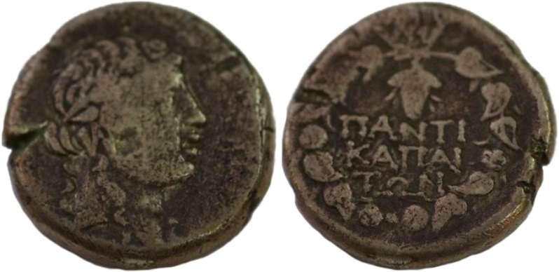 - ПАNTI-КАПАI-TΩN. Венок, над ним монограмма