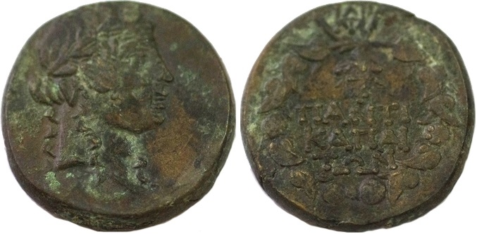 - ПАNTI-КАПАI-TΩN. Венок, над ним монограмма