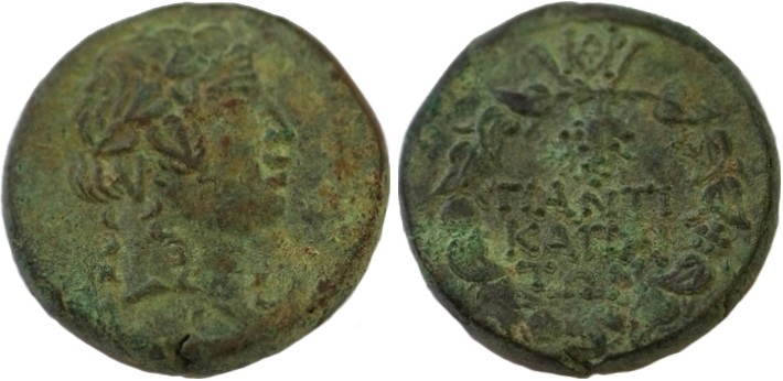 - ПАNTI-КАПАI-TΩN. Венок, над ним монограмма