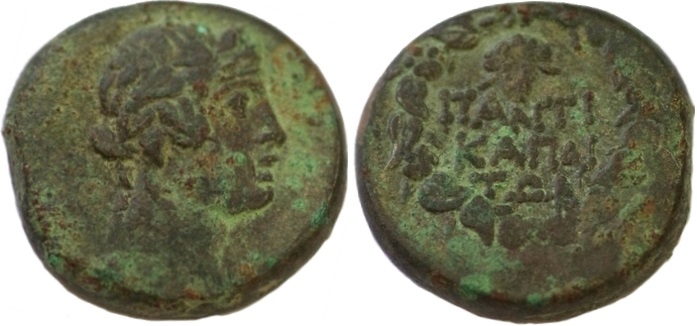 - ПАNTI-КАПАI-TΩN. Венок, над ним монограмма