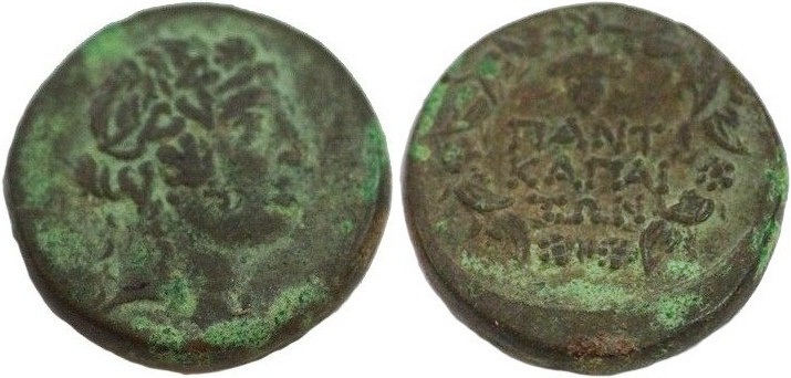 - ПАNTI-КАПАI-TΩN. Венок, над ним монограмма