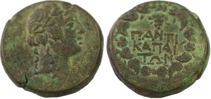 - ПАNTI-КАПАI-TΩN. Венок, над ним монограмма
