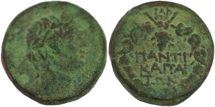 - ПАNTI-КАПАI-TΩN. Венок, над ним монограмма