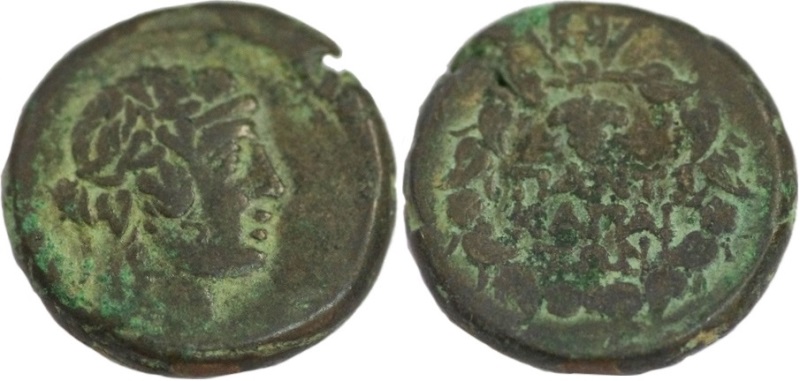 - ПАNTI-КАПАI-TΩN. Венок, над ним монограмма