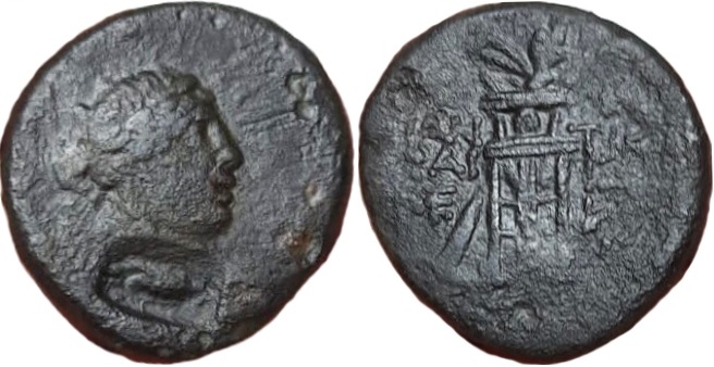 - ΠΑΝ-ΤΙΚΑ-ΠΑΙ-ΤΩΝ. Треножник и тирс, в поле справа и слева монограммы