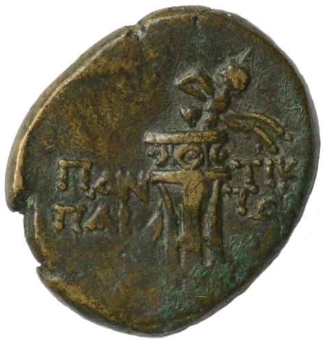 - ΠΑΝ-ΤΙΚΑ-ΠΑΙ-ΤΩΝ. Треножник и тирс, в поле справа монограмма