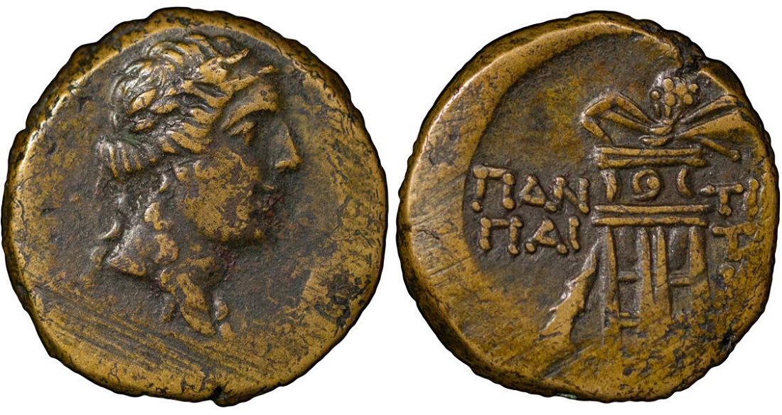 - ΠΑΝ-ΤΙΚΑ-ΠΑΙ-ΤΩΝ. Треножник и тирс, в поле справа монограмма