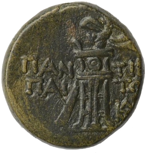 - ΠΑΝ-ΤΙΚΑ-ΠΑΙ-ΤΩΝ. Треножник и тирс, в поле справа монограмма