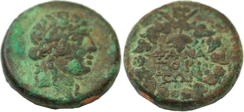 - ΦΑΝΑ-ΓΟΡΙ-ΤΩΝ. Венок, над ним монограмма