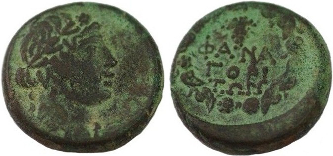 - ΦΑΝΑ-ΓΟΡΙ-ΤΩΝ. Венок, над ним монограмма