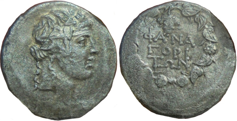- ΦΑΝΑ-ΓΟΡΙ-ΤΩΝ. Венок, над ним монограмма