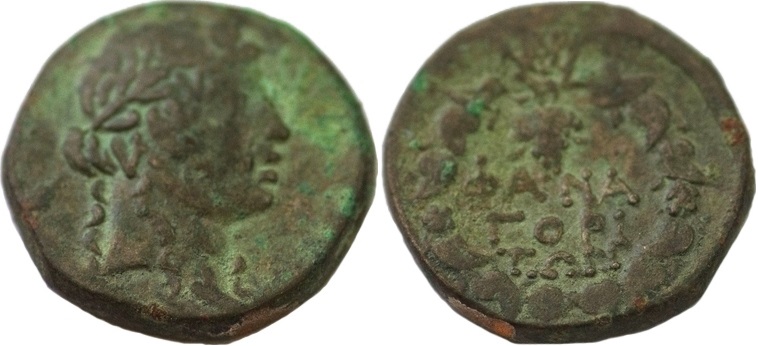 - ΦΑΝΑ-ΓΟΡΙ-ΤΩΝ. Венок, над ним монограмма