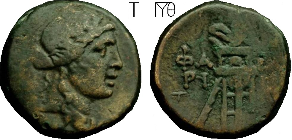 ГлавнаяКаталог монетПаспорт монеты Паспорт монеты: 208-3249-2 Дополнительная информация о монете Частная коллекция.Комментарий:Номер по каталогу (1986 г.) В.А.Анохина дан справочно, так как монеты этого типа с такой разновидностью монограмм в его каталоге не отмечены. Номер:208-3249 Количество монет в архиве:3 монет Центр чеканки:Фанагория Период чеканки: по Анохину В.А. (1986 г.)90 — 80 год до н.э. по Анохину В.А. (2011 г.) по Шелову Д.Б. по Фроловой Н.А. по MacDonald D.90 — 79 год до н.э. по Шонову И.В.83 — 80 год до н.э. Правитель, годы правления:Митридат VI Евпатор, 109-63 гг до н.э. Материал монеты:Медь Номинал:Тетрахалк Вес монеты:7.30 Диаметр монеты:0.0 Описание аверса:Голова Диониса в венке вправо Описание реверса:ΦΑ-ΝΑΓΟ-ΡΙ-ΤΩΝ. Треножник и тирс, в поле по сторонам монограммы Номер по каталогу: Анохина В.А. (1986 г.)208 Анохина В.А. (2011 г.) Шелова Д.Б. Фроловой Н.А. MacDonald D.- Шонова И.В.Таб. XLIII, № 378 Архив монет данного типа 208-3249-1 Фанагория. 90 — 80 год до н.э. Медь Тетрахалк, вес 8.77 г, d21.0 мм 208-3249-2 Фанагория. 90 — 80 год до н.э. Медь Тетрахалк, вес 7.30 г, d0.0 мм 208-3249-3 Фанагория. 90 — 80 год до н.э. Медь Тетрахалк, вес 6.50 г, d20.0 мм