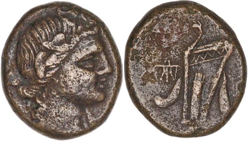 - Голова Диониса в плющевом венке вправо.
