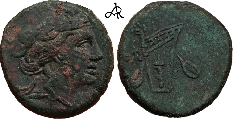 ГлавнаяКаталог монетПаспорт монеты Монета: 212-3399 Дополнительная информация о монете Частная коллекция ZAN.Комментарий:Номер по каталогу Анохина В.А. (1986 г.) дан условно. Номер:212-3399 Количество монет в архиве:1 монет Центр чеканки:Пантикапей Период чеканки: по Анохину В.А. (1986 г.)80 — 70 год до н.э. по Анохину В.А. (2011 г.) по Шелову Д.Б. по Фроловой Н.А. по MacDonald D. по Шонову И.В. Правитель, годы правления:Махар, 81- 65 гг до н. э. Материал монеты:Медь Номинал:Обол Вес монеты:16.00 Диаметр монеты:27.0 Описание аверса:Голова Диониса в плющевом венке вправо. Описание реверса:Горит, в поле слева монограмма Номер по каталогу: Анохина В.А. (1986 г.)212 Анохина В.А. (2011 г.)- Шелова Д.Б.- Фроловой Н.А.- MacDonald D.- Шонова И.В.- Архив монет данного типа 212-3399-1 Пантикапей. 80 — 70 год до н.э. Медь Обол, вес 16.00 г, d27.0 мм