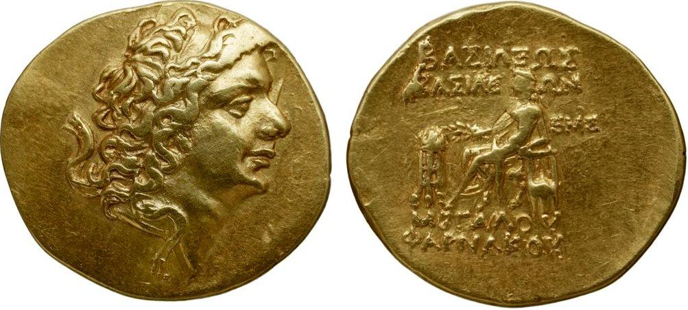 ГлавнаяКаталог монетПаспорт монеты Паспорт монеты: 218-4331-3 Дополнительная информация о монете Bibliothеque nationale de France. Notice n° : FRBNF41830812 Номер:218-4331 Количество монет в архиве:5 монет Центр чеканки:Пантикапей Период чеканки: по Анохину В.А. (1986 г.)53 — 52 год до н.э. по Анохину В.А. (2011 г.)53 — 52 год до н.э. по Шелову Д.Б. по Фроловой Н.А. по MacDonald D.53 — 52 год до н.э. по Шонову И.В. Правитель, годы правления:Фарнак, 63-47 гг до н. э. Материал монеты:Золото Номинал:Статер Вес монеты:8.16 Диаметр монеты:0.0 Описание аверса:Голова царя вправо Описание реверса:ΒΑΣΙΛΕΩΣ ΒΑΣΙΛΕΩΝ ΜΕΓΑΛΟΥ ΦΑΡΝΑΚΟΥ. Аполлон на троне влево, слева треножник, справа лира и ЕМΣ Номер по каталогу: Анохина В.А. (1986 г.)218 Анохина В.А. (2011 г.)1303 Шелова Д.Б.- Фроловой Н.А. MacDonald D.184/1 Шонова И.В. Архив монет данного типа 218-4331-1 Пантикапей. 53 — 52 год до н.э. Золото Статер, вес 8.25 г, d22.0 мм 218-4331-2 Пантикапей. 53 — 52 год до н.э. Золото Статер, вес 8.08 г, d20.0 мм 218-4331-3 Пантикапей. 53 — 52 год до н.э. Золото Статер, вес 8.16 г, d0.0 мм 218-4331-4 Пантикапей. 53 — 52 год до н.э. Золото Статер, вес 8.19 г, d21.0 мм 218-4331-5 Пантикапей. 53 — 52 год до н.э. Золото Статер, вес 8.13 г, d19.0 мм