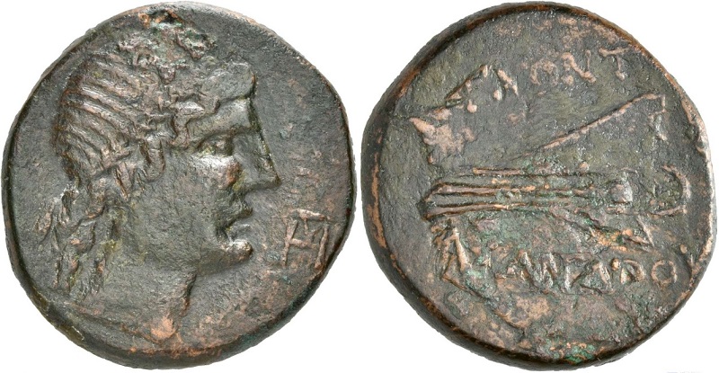 - Прора влево, справа трезубец. Надпись в две строки ΑΡΧΟΝΤΟΣ / ΑΣΑΝΔΡΟΥ