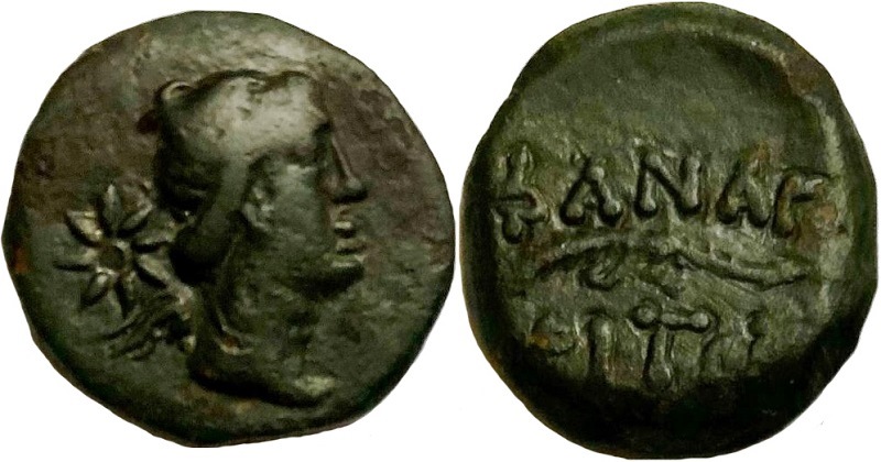 - ΦΑΝΑΓΟ-ΡΙΤΩΝ. Между строками легенды - ветвь лавра, перевязанная лентой