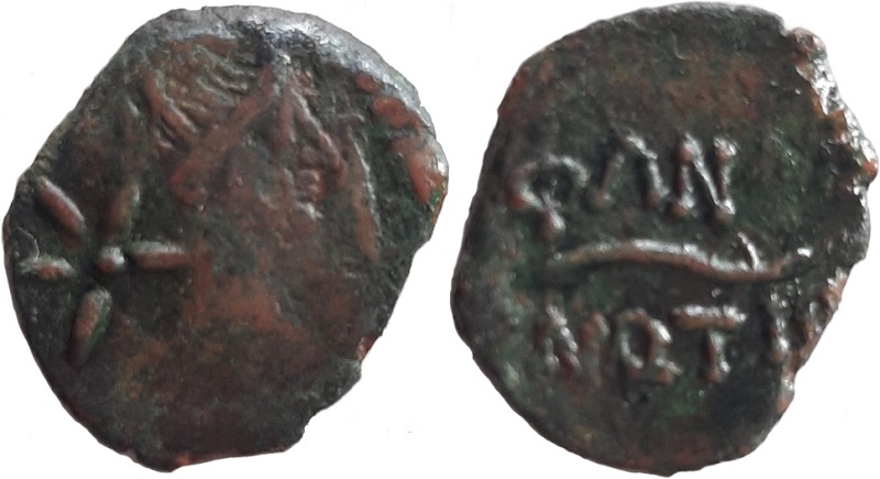 ΦΑΝΑLΟ-ΝΩΤΙΡ. Между строками легенды - ветвь лавра, перевязанная лентой