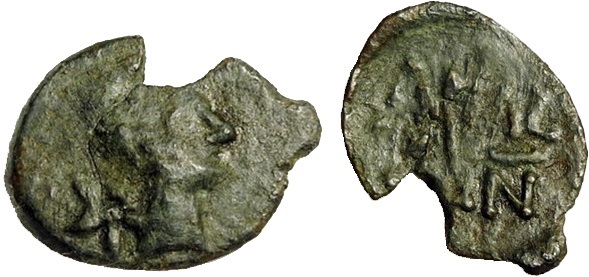 ΛNΛL - ITΩN. Между строками легенды - ветвь лавра, перевязанная лентой