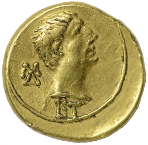Голова Августа влево.