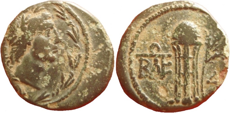 - Бюст Аполлона в лавровом венке, вправо. Изображение помещено в венок.