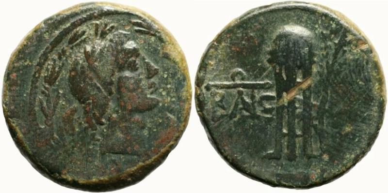 - Бюст Аполлона в лавровом венке, вправо. Изображение помещено в венок.