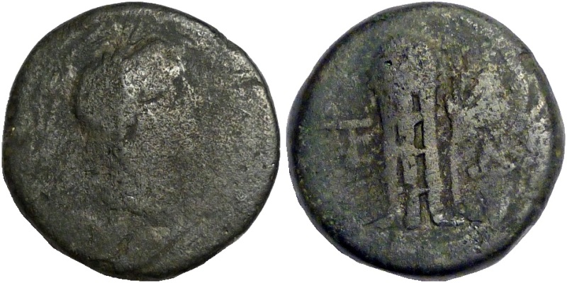 - Бюст Аполлона в лавровом венке, вправо. Изображение помещено в венок.