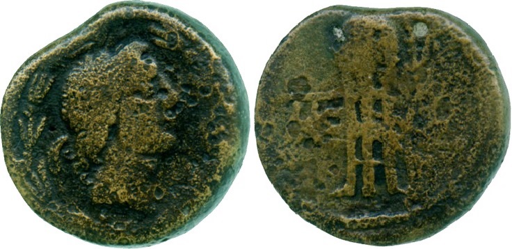 - Бюст Аполлона в лавровом венке, вправо. Изображение помещено в венок.