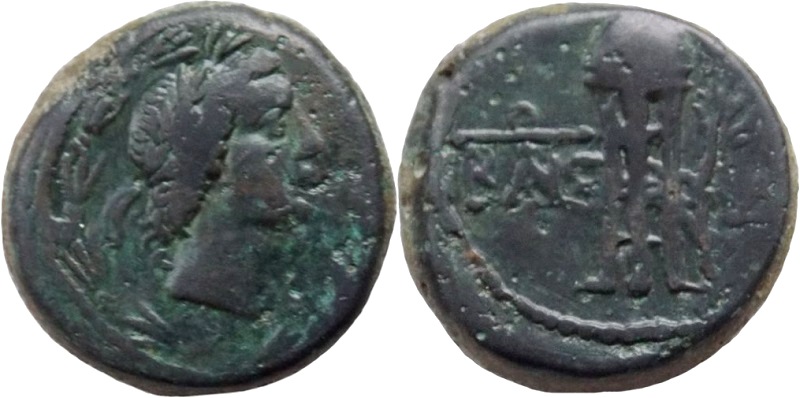 - Бюст Аполлона в лавровом венке, вправо. Изображение помещено в венок.