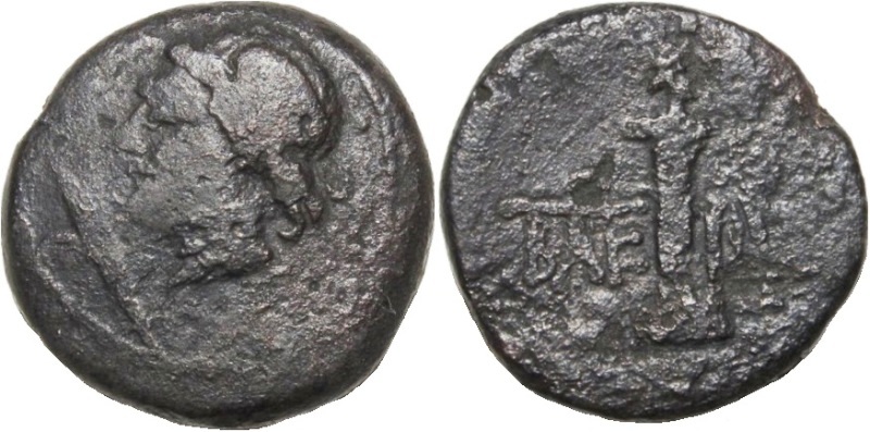 - Голова Персея в крылатом шлеме, влево, впереди - гарпа.