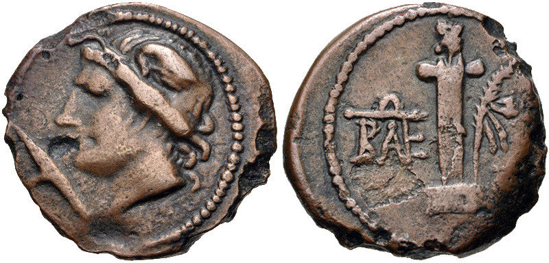 - Герма, справа пальмовая ветвь, украшенная лентами, слева монограмма ВАЕ, справа Z