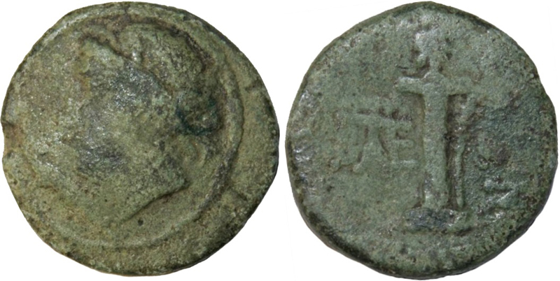 - Герма, справа пальмовая ветвь, украшенная лентами, слева монограмма ВАЕ, справа Z