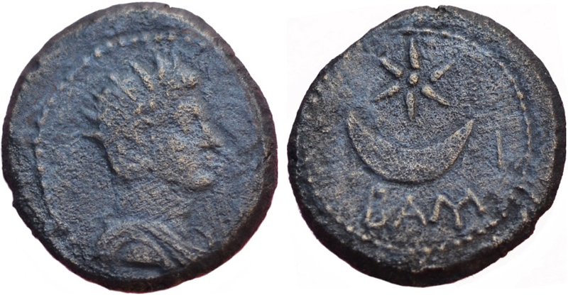 Звезда и полумесяц, внизу ΒΑΜ, справа Ι .