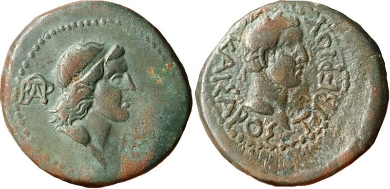 - ΚΑΙΣΑΡΟΣ ΤΙΒΕΡΙΟΥ. Голова Тиберия вправо